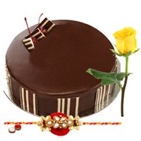 Sweeten your relationships by sending this Wholesome Raksha Bandhan Gift of Chocolate Cake (1/2 kg.) and a Single Yellow Rose with Free Rakhi, Roli Tilak and Chawal to your close ones who deserve your love. (More Rakhi can be added from below option) Rs. 1395