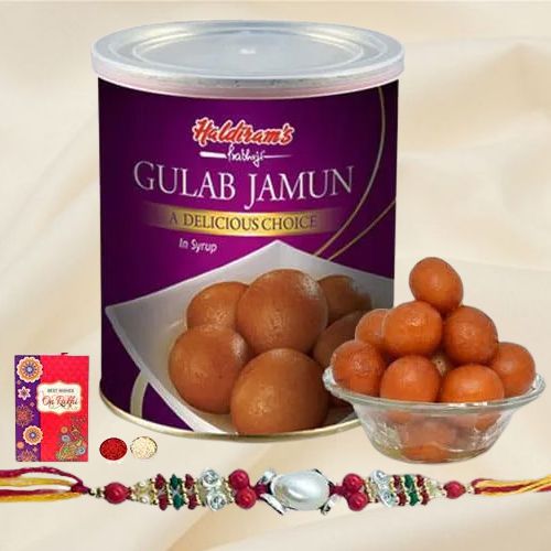 Make this Raksha Bandhan more graceful by ordering online this Haldirams Gulab Jamun with Dual Rakhis which arrives with a free Roli, Tilak and Chawal for prosperity of your lovely siblings.